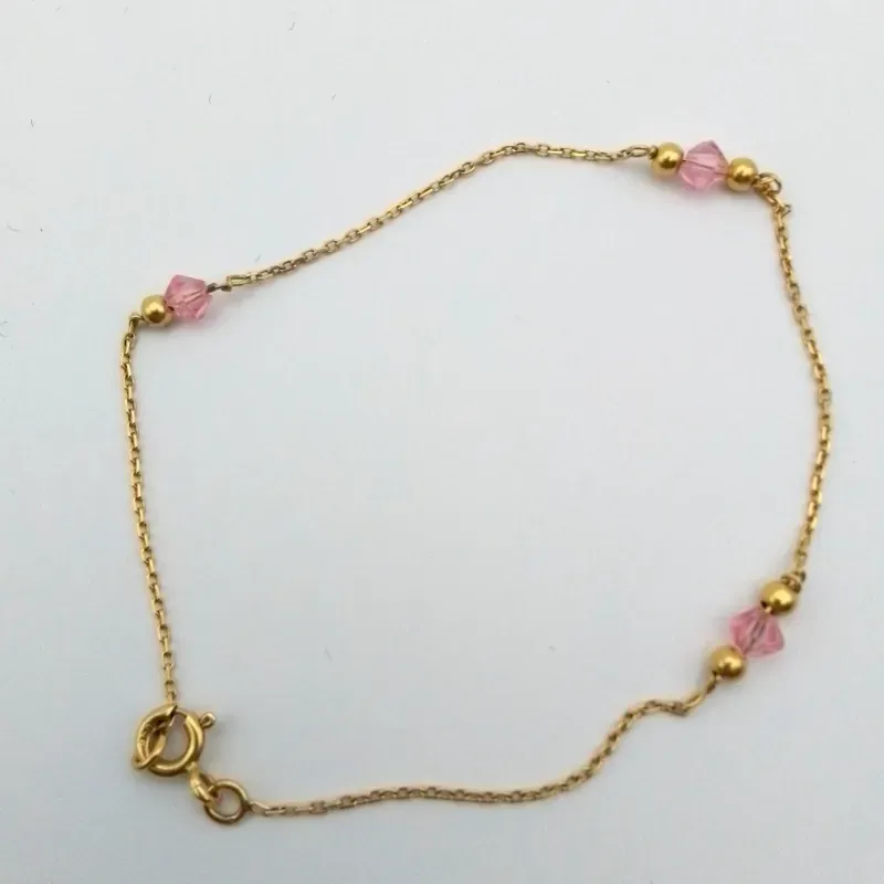 Guillo original 18K con gemas rosadas mide abierto 18.5 cm de largo