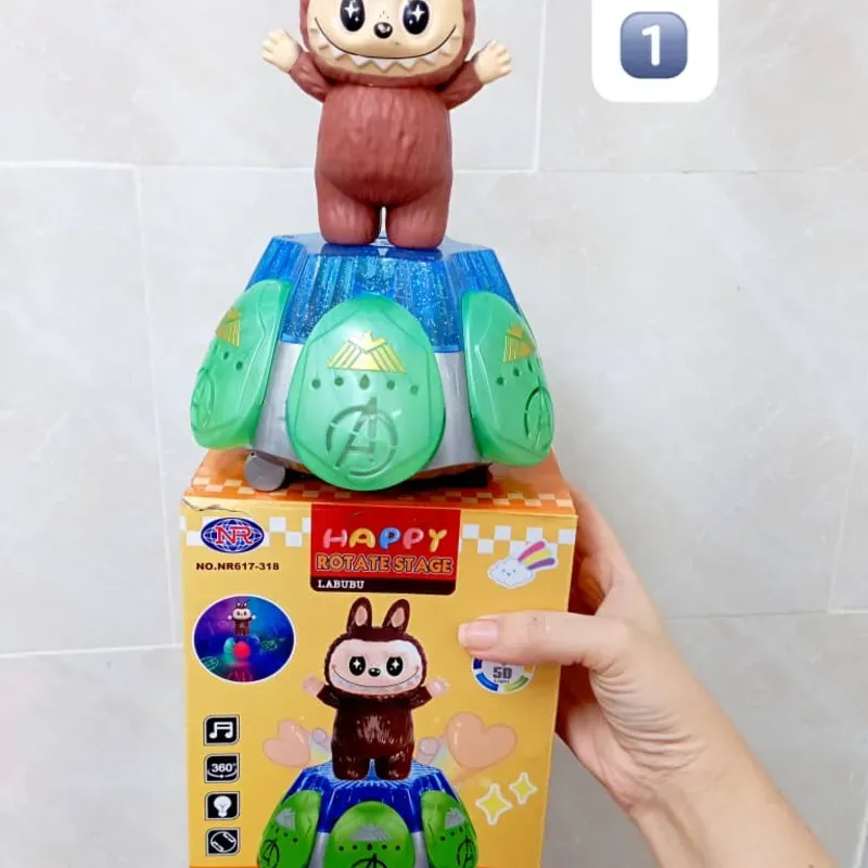 LABUBU SOBRE BASE COLORIDA CON MÚSICA