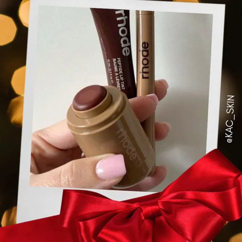- Rhode rubor (Tono a escoger) - Rhode gloss (Tono a escoger) -Rhode delineador labial (Tono a escoger)