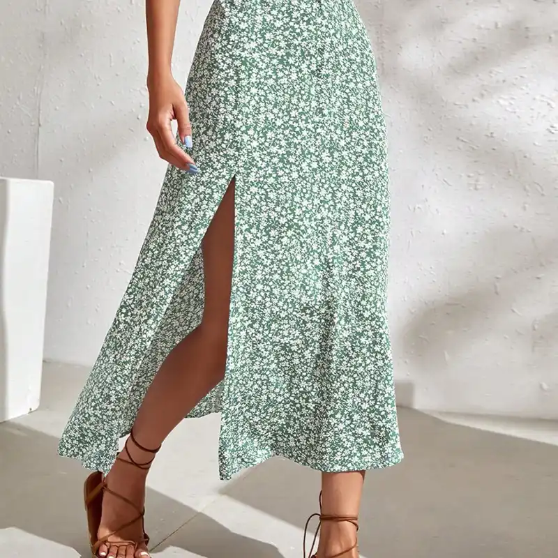 Falda con estampado de flores y apertura lateral