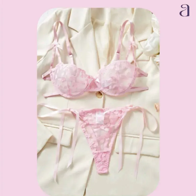 Set de lenceria con bordado de corazón