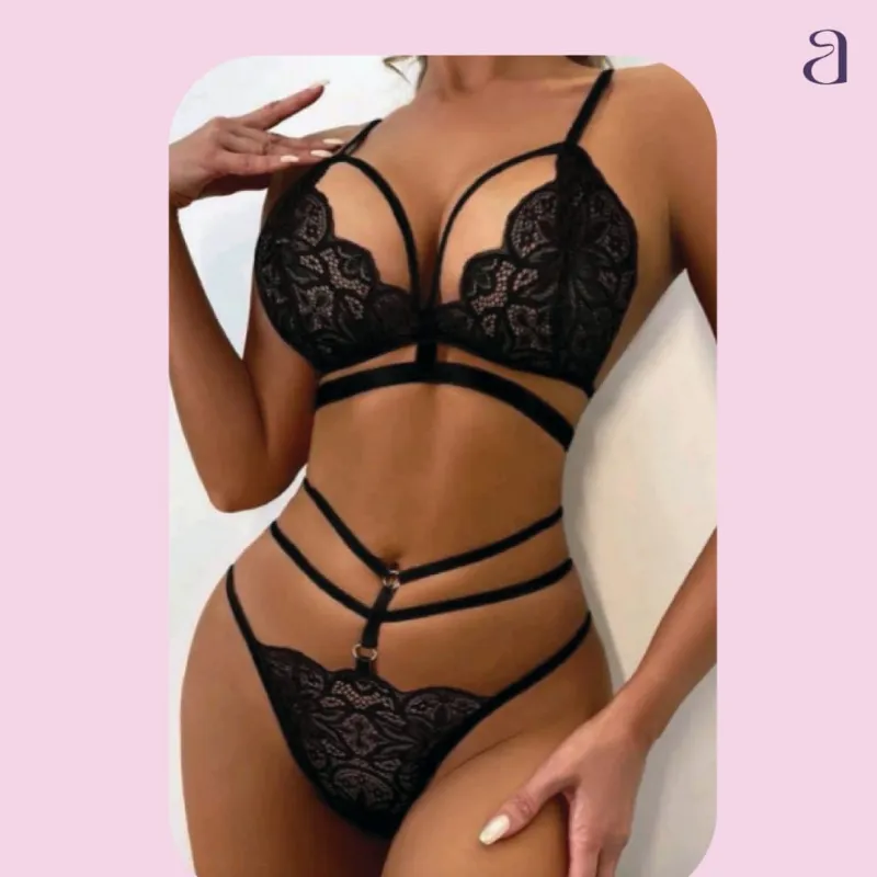 Set de lencería de encaje floral