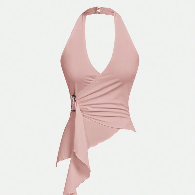 T op de rantes ajustado con hebilla metálica y bajo asimétrico
