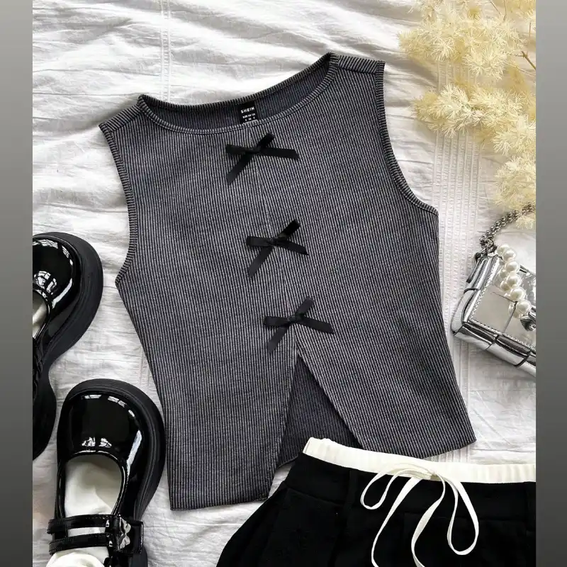 Top con abertura delantera y decoración con lazo