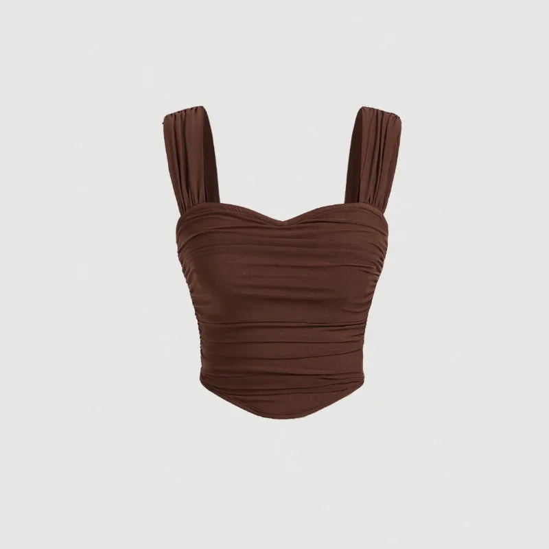 Top unicolor fruncido de tirantes anchos
