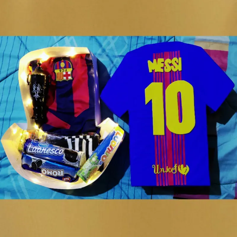 Se hace la caja con las luces (sin lo de adentro)Mide 35 cm de alto ,viene con sus luces en la base de la caja.Se hace de cualquier futbolista.