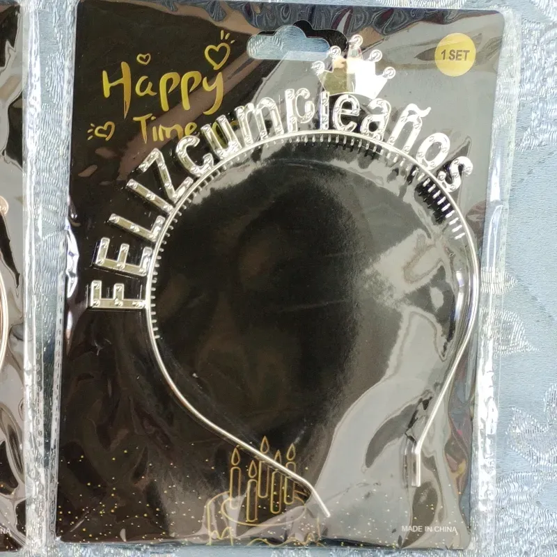 Cintillo Feliz cumpleaños plateado