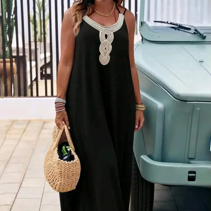 Vestido de tiras largas con cuello de encaje floral y efecto estilizante para mujer de talla grande