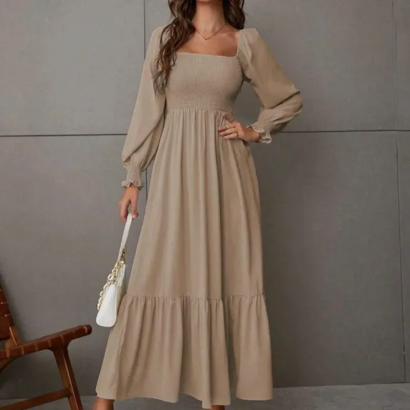 Vestido maxi con cuello cuadrado, volante fruncido y bajo con volante para mujeres.