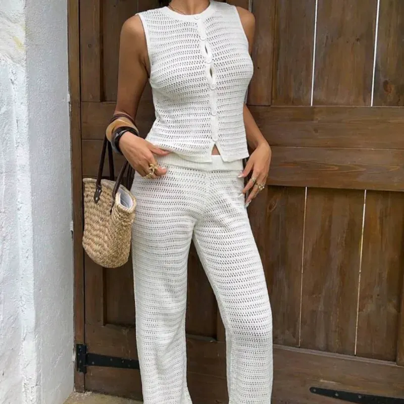 Set de 2 suéteres casuales de corte hueco para mujer, para uso diario y vacacional, diseño minimalista