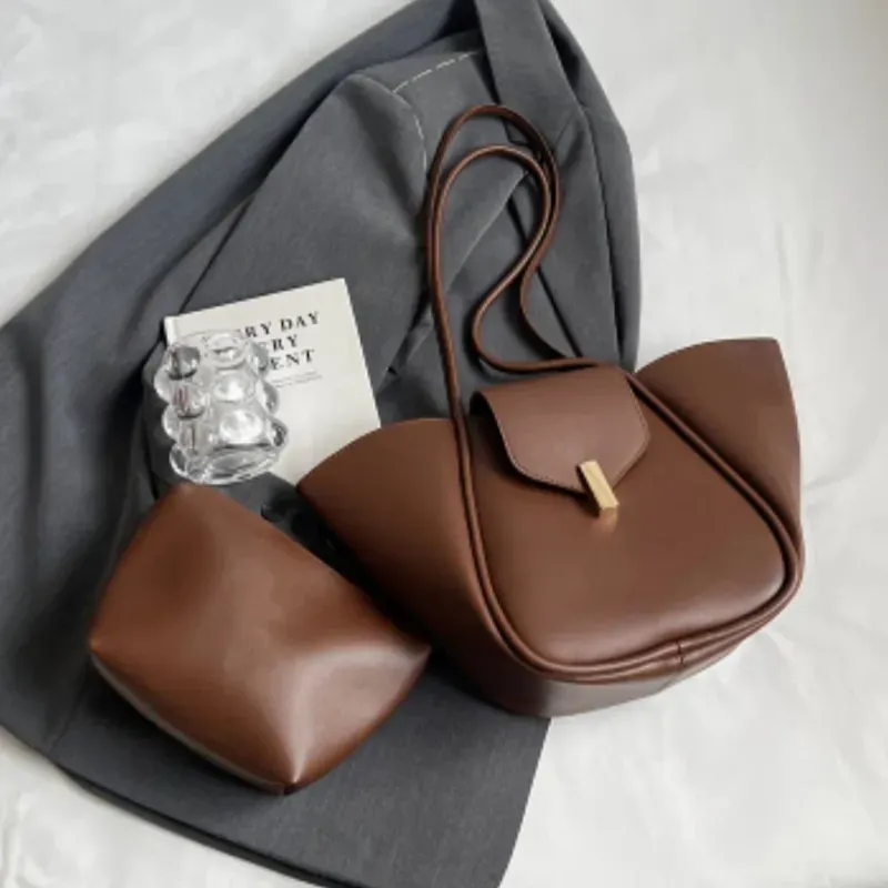 Sistema 2-en-1: Incluye un bolso principal de hombro y un organizador interno (pouch) a juego, ideal para mantener tus esenciales ordenados o usarlo de forma independiente.