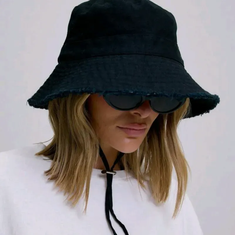 Sombrero de cubo con cordón deshilachado, ideal para festivales