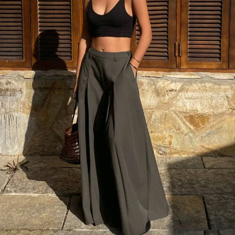 Pantalones anchos de pierna ancha plisados y sueltos para mujer, de unicolor, para primavera/verano