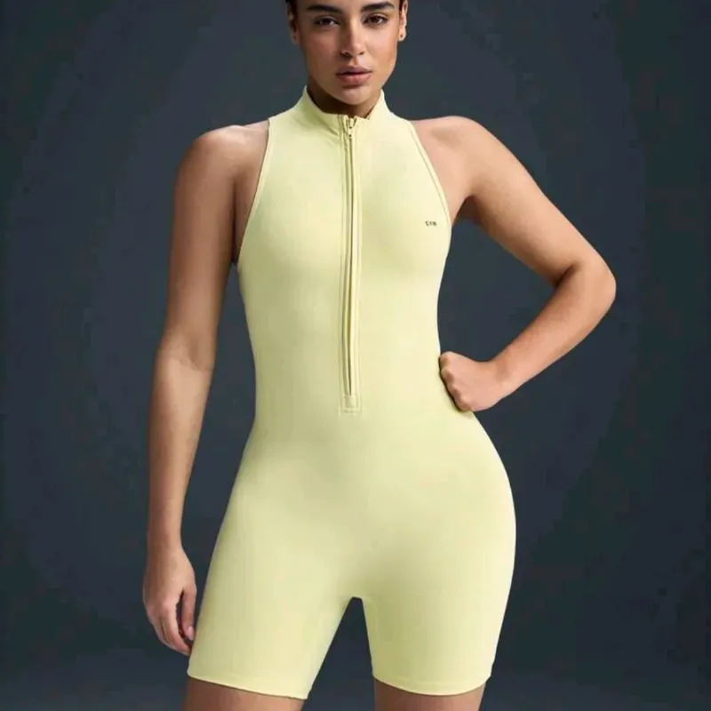 Mono ajustado de mujer de un solo color con cremallera, sin mangas, con espalda descubierta y recortes
