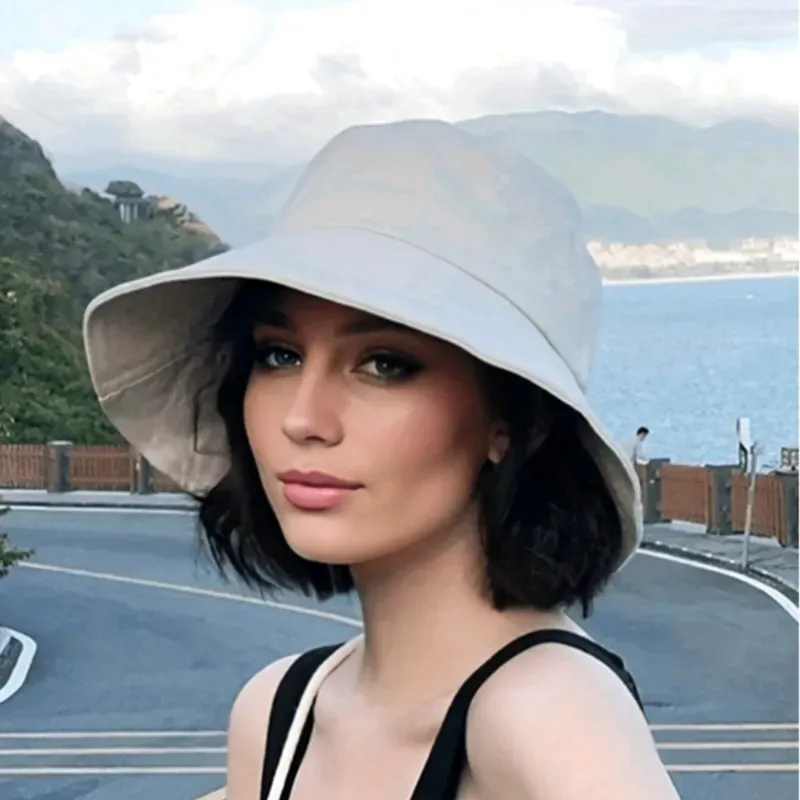 Sombrero de cubo de ala ancha elegante para mujer, sombrero de protección solar de unicolor casual para primavera y verano, transpirable y cómodo, adecuado para actividades al aire libre y ropa deportiva