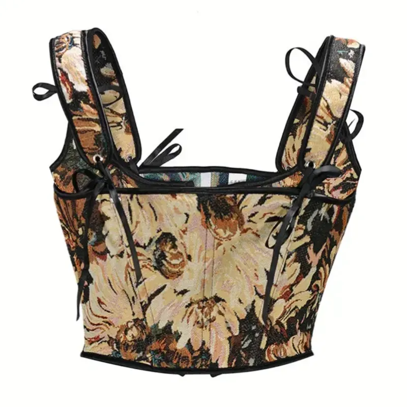 Top de corsé con cierre cruzado en la parte delantera, sin mangas, ajustado, estilo sin espalda, estampado floral.
