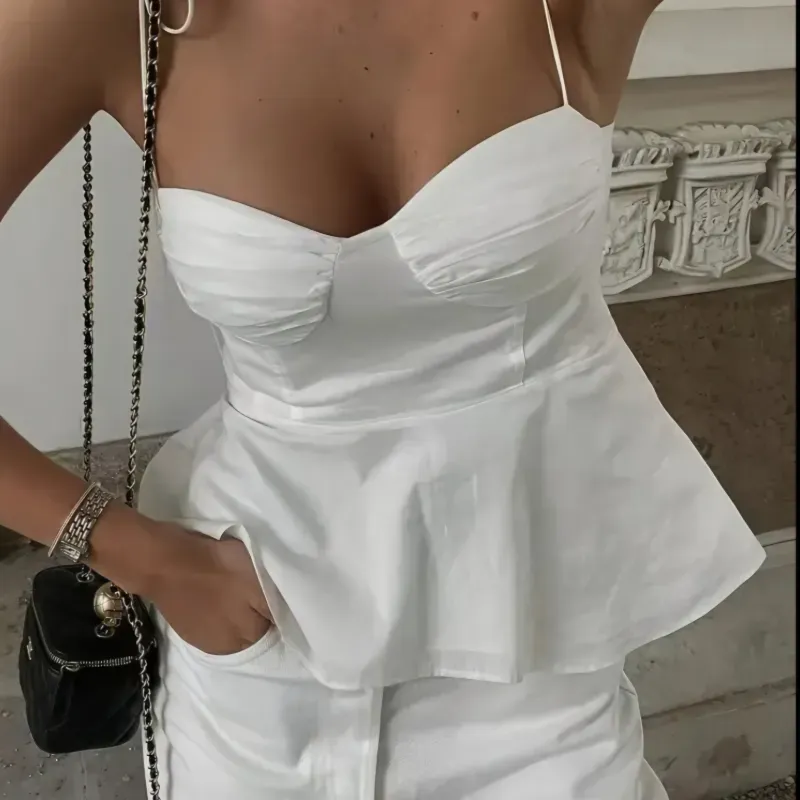 Elegante Top de Verano para Mujer, Nueva Colección, Color Sólido, Dobladillo con Volantes, Sin Mangas.