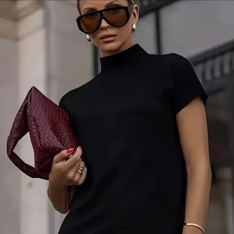 Un diseño atemporal de cuello alto y corte estructurado que redefine la elegancia moderna. Su silueta minimalista en negro profundo es la base perfecta para cualquier accesorio de lujo.