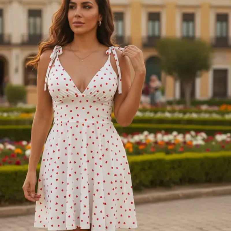 Confeccionado en tejido licra brush lisa en estampado fondo blanco con corazones rojos en la talla S/M.