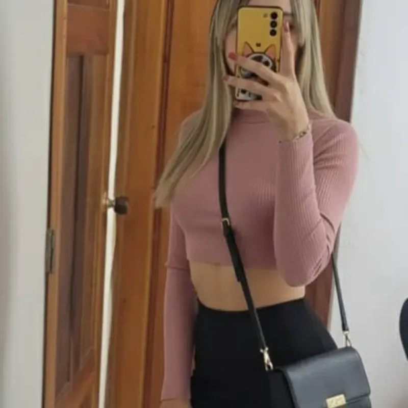 Top de mangas largas y cuello alto confeccionado en tejido brush acanalado en color rosa vieja en la talla SM.
