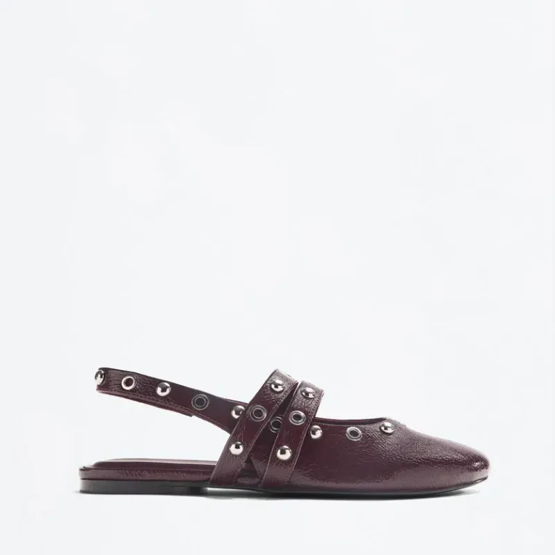 Balerinas Rojo Vino con Tachuelas
