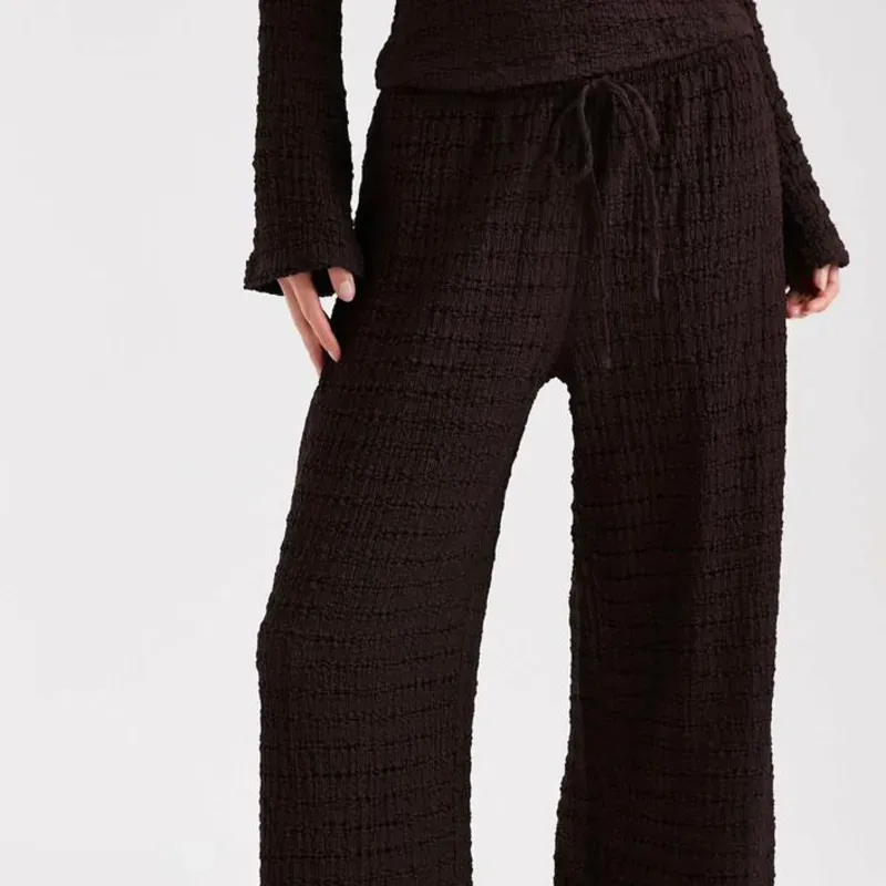 PANTALONES MARRON CHOCOLATE DE PERNERA ANCHA CON LAZADA