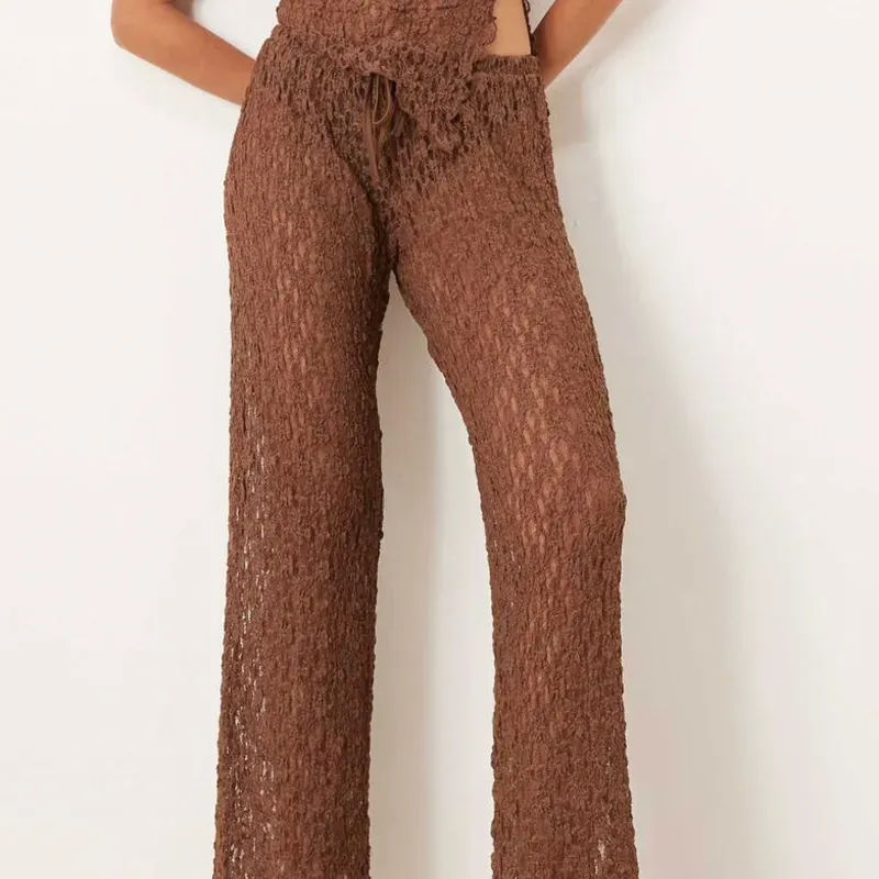 PANTALONES MARRONES DE TALLE MEDIO Y PERNERA ANCHA PARA FESTIVALES