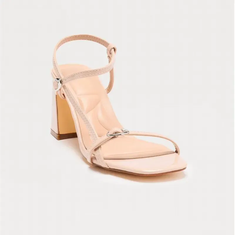 Tacones Beige Tacón Cuadrado Tira Tobillera