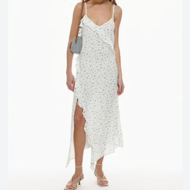 Vestido Largo Blanco Estampado Tirantes con Vuelos