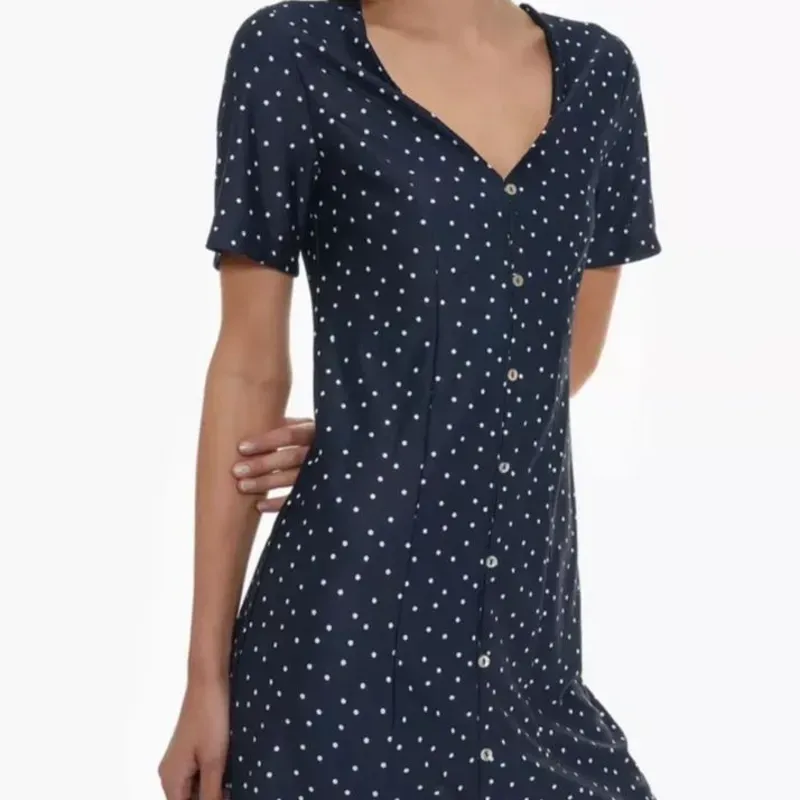 Vestido Mini Azul Lunares Blancos Abotonado