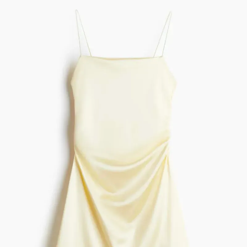 VESTIDO TIRANTE FRUNCIDO SATEN AMARILLO MANTEQUILLA