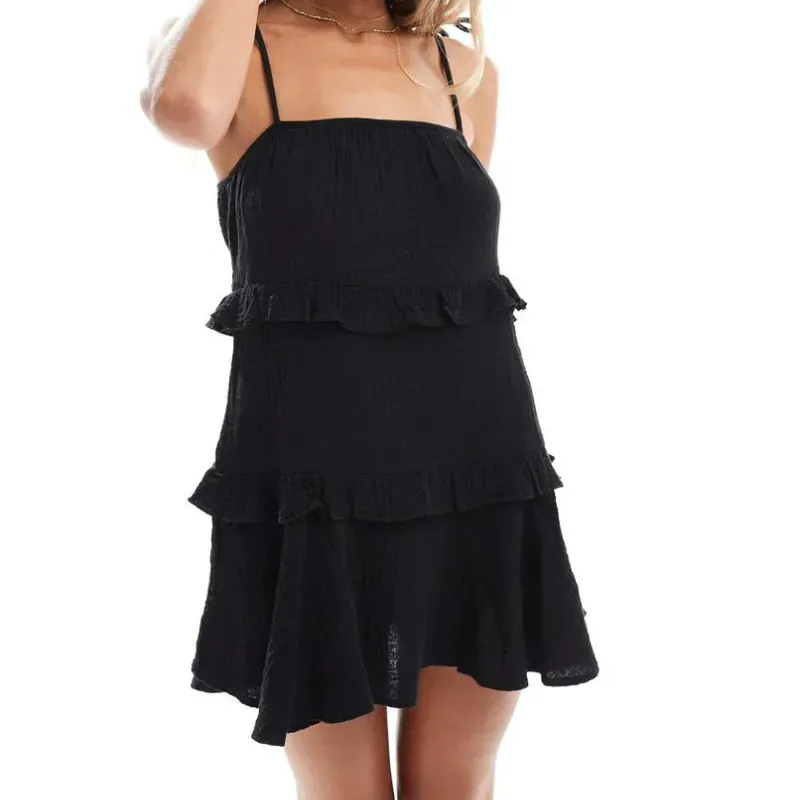 VESTIDO VERANIEGO CORTO NEGRO ESCALONADO DE NEW LOOK