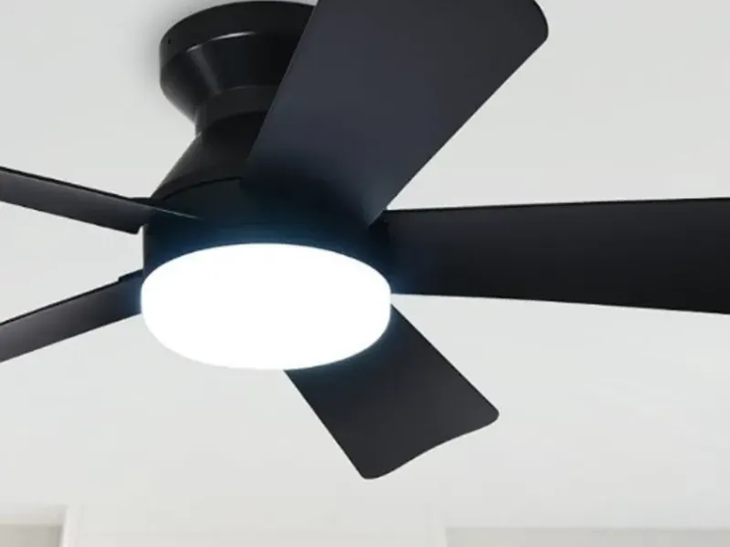 Ventilador de techo de 5 aspas color negro, de 25", luz con led tricolor ajustable con mando a distancia, 6 velocidades