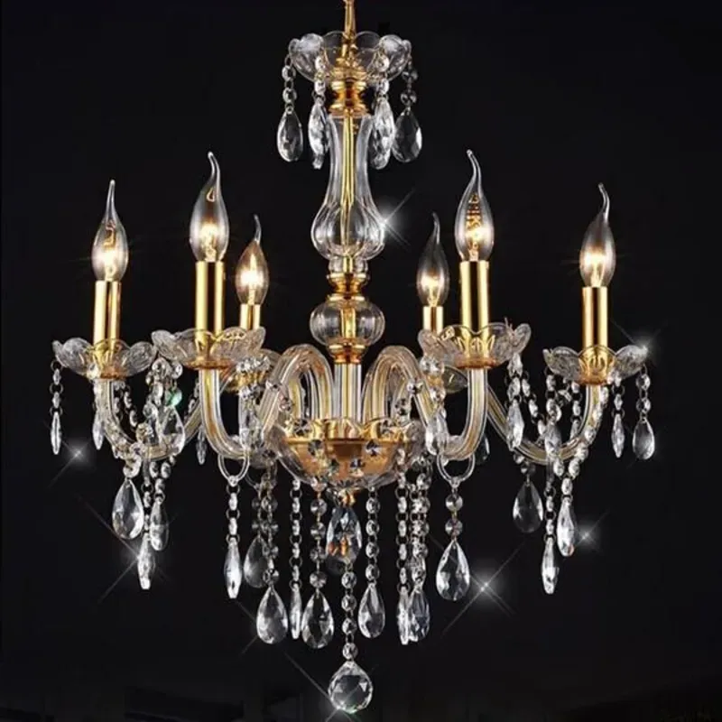 Luminaria de techo clásica tipo chandelier de 6 brazos de cristal con sócket E14, bombillos no incluidos