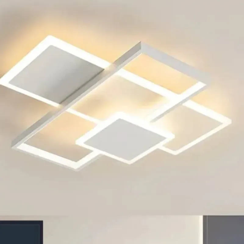 Luminaria de adosar a techo con 3 rectángulos con iluminación led tricolor, color blanco.