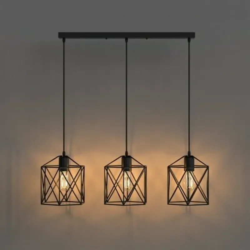Luminaria de techo con golcha rectangular y 3 pantallas colgantes estructurales de socket E27