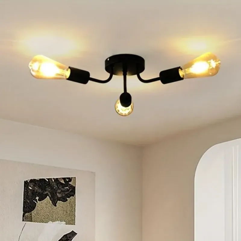 Luminaria de techo tipo Sputnik con 3 brazos curvos, en color negro, socket E27, bombillos no incluidos