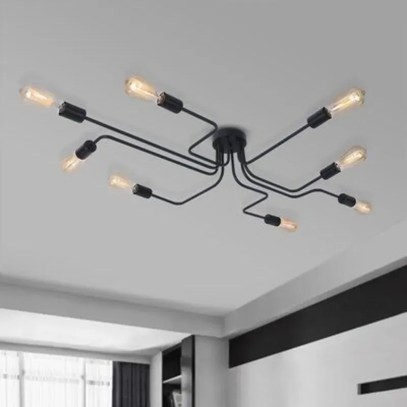 Luminaria de techo tipo Sputnik de 8 brazos asimétricos con socket E27, no incluye los bombillos