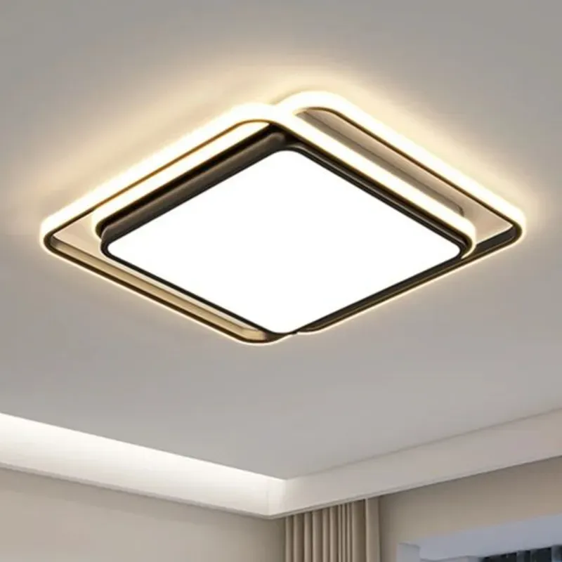 Luminaria de techo tipo plafón con iluminación led tricolor. Dimensiones 40x40cm