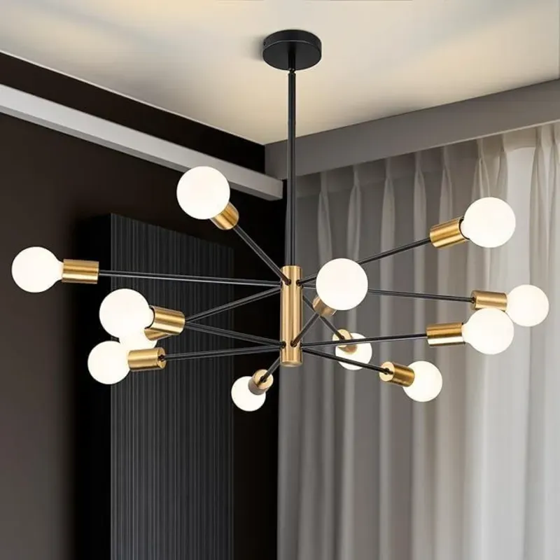 Luminaria de techo tipo Sputnik de 12 brazos con sockets dorados E27. Bombillos no incluidos