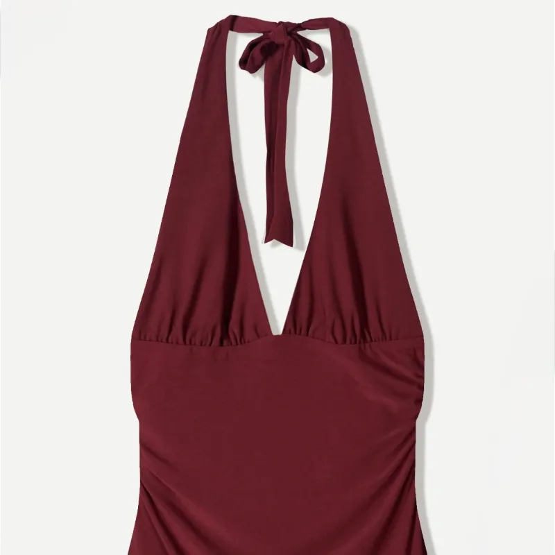 Vestido mini halter Rojo Bershka