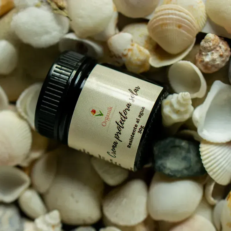 Hidrata la piel antes y luego de la exposición solar dejándola altamente nutrida. Bloquea alrededor del 60% de los rayos UVA y no bloquea los rayos UVB, que son esenciales para la síntesis de la vitamina D. Además de proteger, este producto impide que las capas de la piel se dañen por la sobreexposición solar, garantizando un bonito bronceado. *Contiene una concentración del 12% de óxido de zinc* que es un filtro solar físico que previene las quemaduras y los cambios degenerativos de la piel que causan los rayos ultravioleta, es impermeable a la radiación solar por reflexión, es decir, que refleja la luz a modo pantalla. *Esta crema es resistente al agua y protege además la piel del cloro de las piscinas. Tiene un olor exquisito ya que contiene aceite esencial de Rosa Mosqueta y de Almendras dulces.*