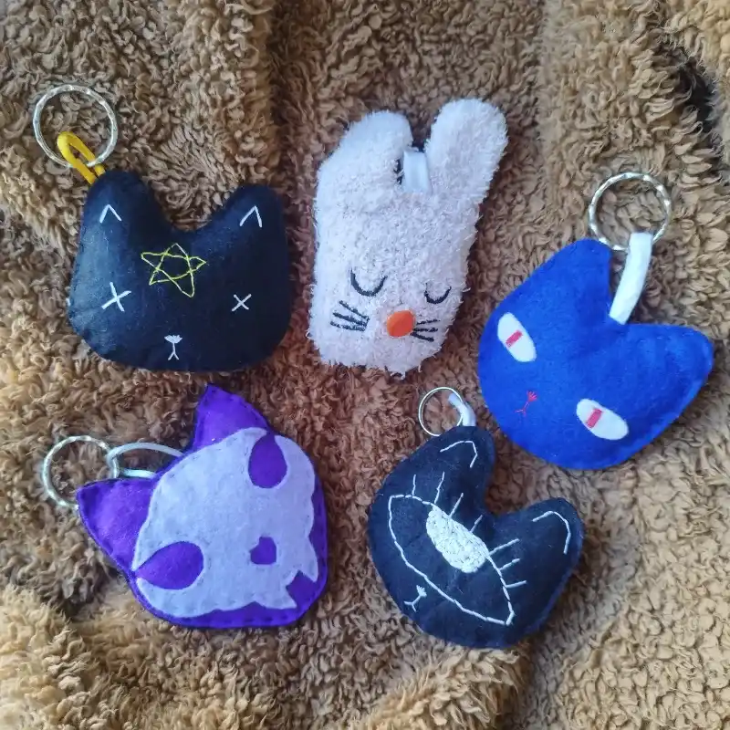 Muñeco confeccionado a mano, con retazos de tela y botones. Tamaño pequeño a medio. Consultar disponibilidad o posibilidad de producción.