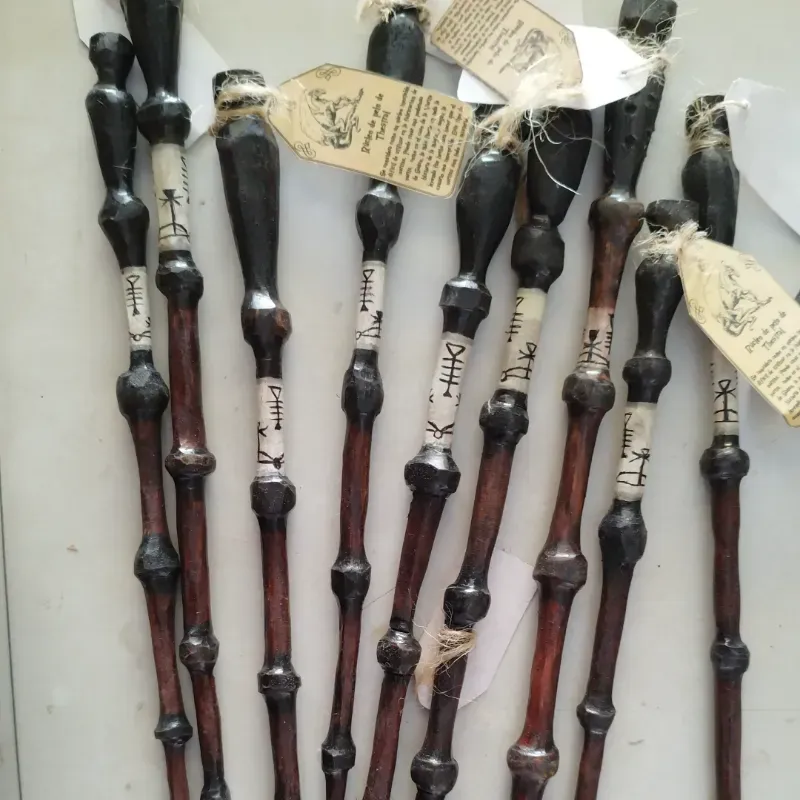 Varita de sauco en madera tallada y pintada. Medidas aproximadas de 35 cm