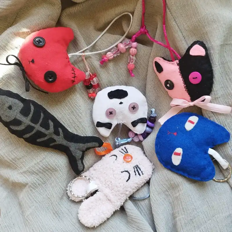 Muñeco confeccionado a mano, con retazos de tela y botones. Tamaño pequeño a medio. Consultar disponibilidad o posibilidad de producción.