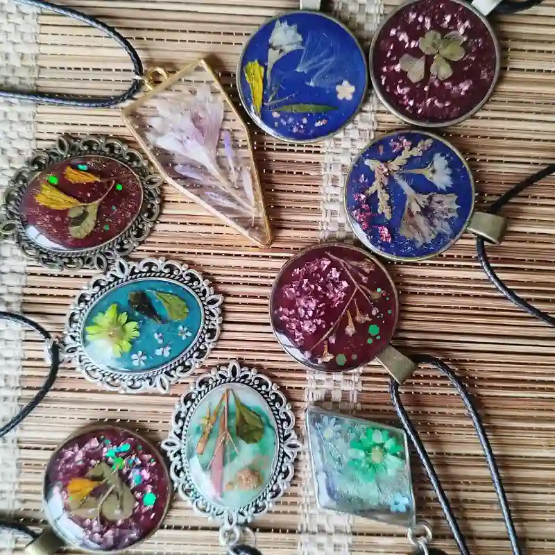 Bandejas de estilo vintage decoradas con flores, piedras o mezclas de color, encapsulados con resina. Siempre son diferentes. Consultar disponibles.