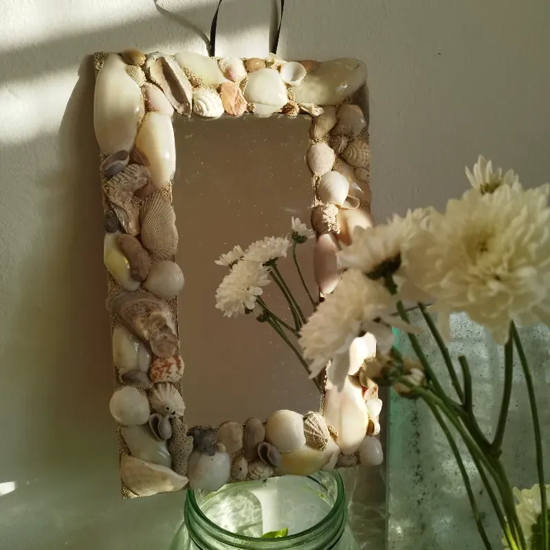 Espejo de 23 x 11 cm con marco de caracoles (cartón reforzado)