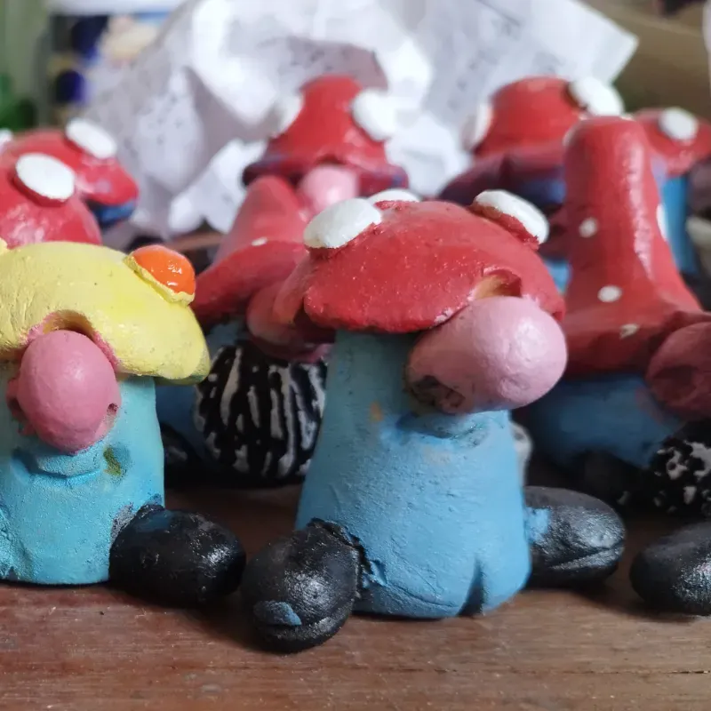 Pequeña figurita de barro, ideal para decorar macetas o rincones. El barro está cocido y policromado con pinturas de aceite y barniz para exteriores. Se puede mojar y coger sol que no pierde color ni se rompe. Sirve como porta incienso.