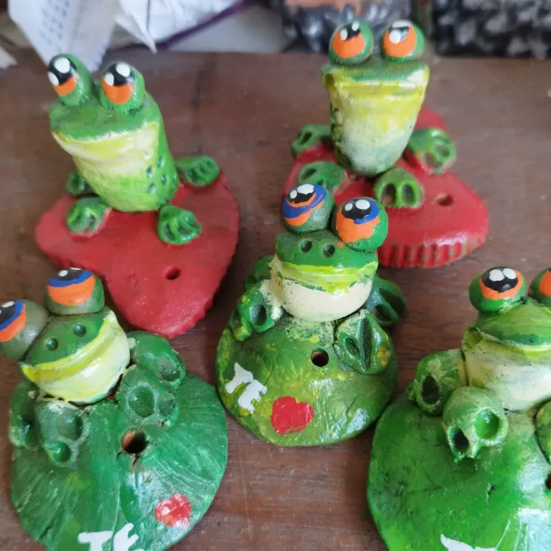 Portaincienso de barro cocido y policromado con pintura de aceite y sellado con barniz. No pierde color no con lluvia Ani sol. Se puede poner en macetas como decoración.