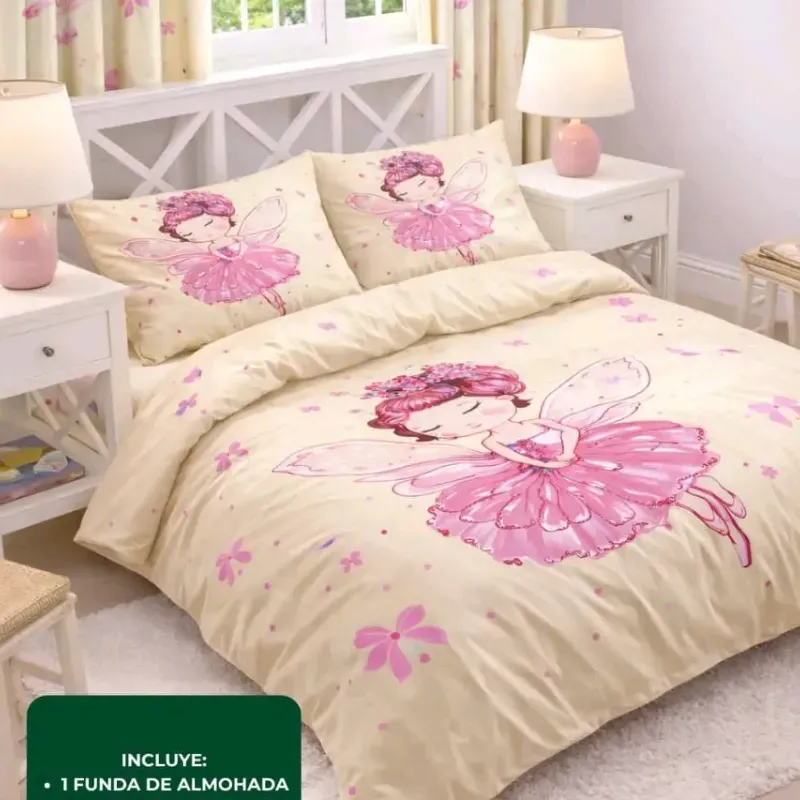 🧚♀️🛌 Edredones de bailarina súper cómodos y abrigaditos (¡pero ligeros! 😉). Vienen con 1 funda para almohada. Ideales para camas personales y de 3/4. ¡Como nubes para tus pequeños! ☁️